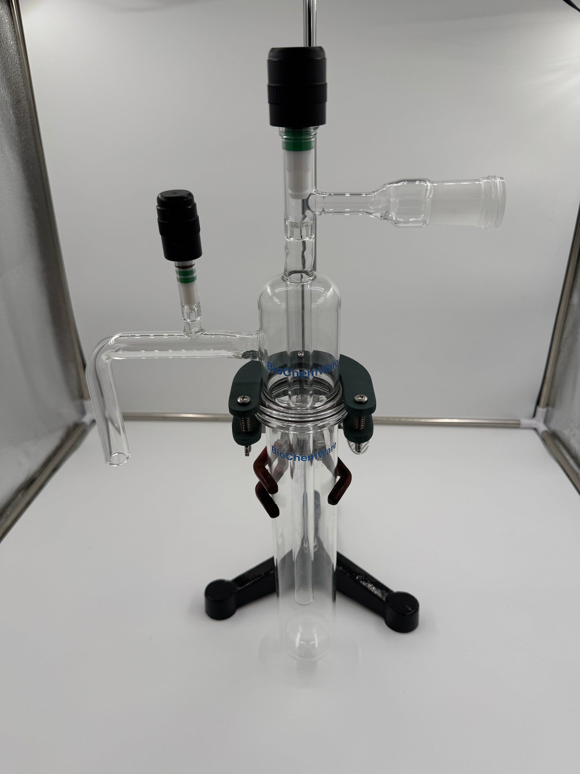 High Vacuum Trap with 0-8mm valve to isolate the trap while keeping the roughing pump operating. Trap has a vent valve for opening to atmosphere and o-ring flat flange fitting. Outer trap measures 58mm in diameter. Vacuum pump take off is 3/4" Supplied with horseshoe clamp.